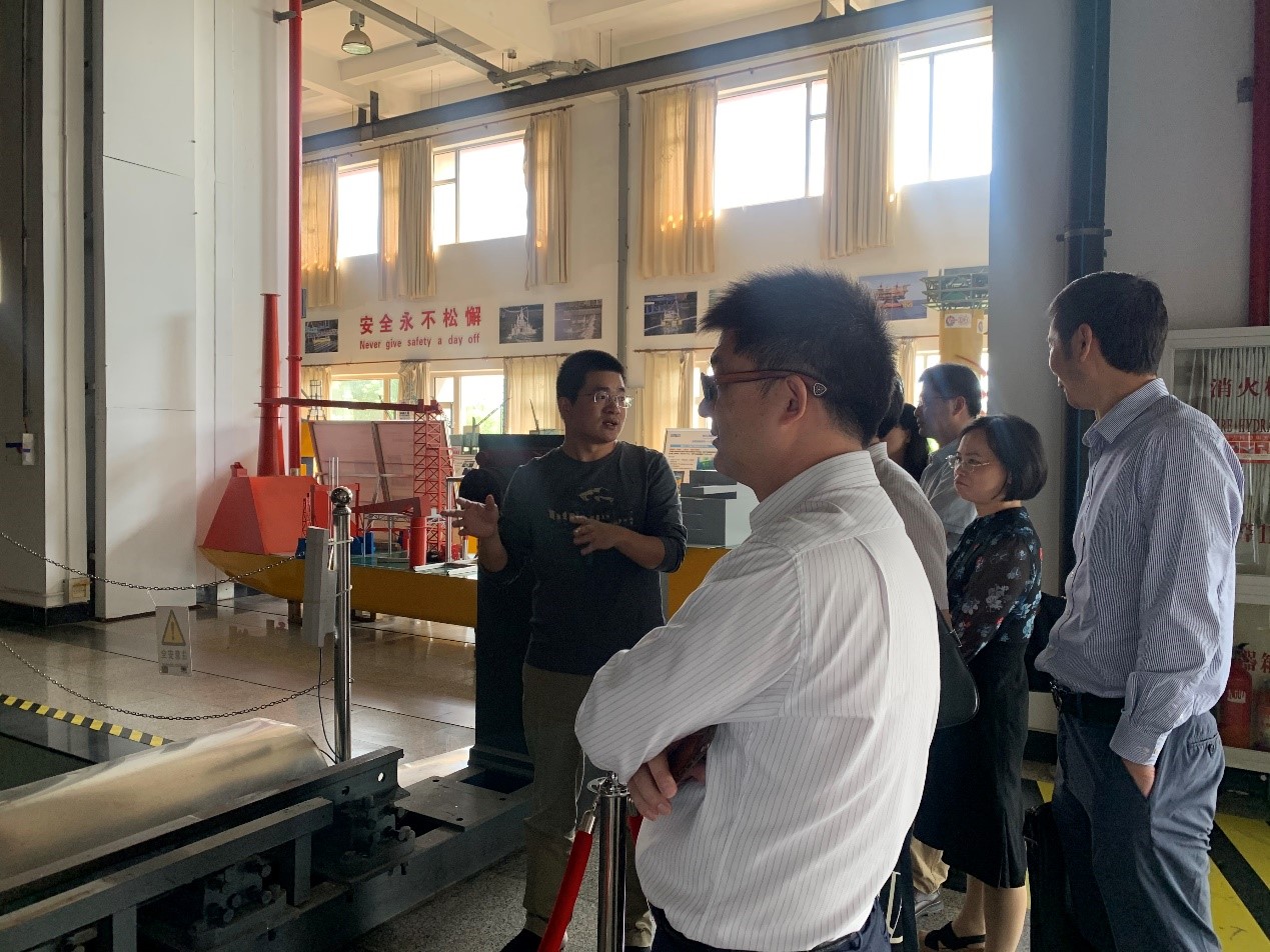 会后,南通大学交通与土木工程学院党委书记张莉莉、院长施佺一行参观了我院船舶与海洋工程设计研究所、水下工程实验室和海洋深水试验池。