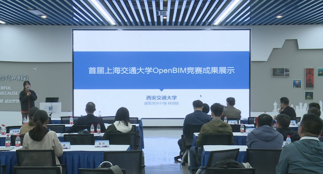 下午的学术交流活动由张家春主持。在分享环节上,首届上海交大OpenBIM设计作品竞赛一等奖获奖团队代表3044am永利集团官网的王晶和李世凯同学、西安交通大学的林玥铭同学、西南交通大学的雷昕同学分别以本组参赛项目为例,展示了在OpenBIM竞赛中的成果,分享使用OpenBIM技术进行协同设计的理解和感悟。三组代表都对天磁NMBIM协同设计平台在多专业协同设计中所起的作用进行了详细的描述,并对NMBIM自主研发的NMI数据格式表示了极大的兴趣。同学们表示,在利用NMBIM将IFC文件转换为NMI文件后,模型的打开速度提升了5-10倍,大大提高了多专业协同的效率。