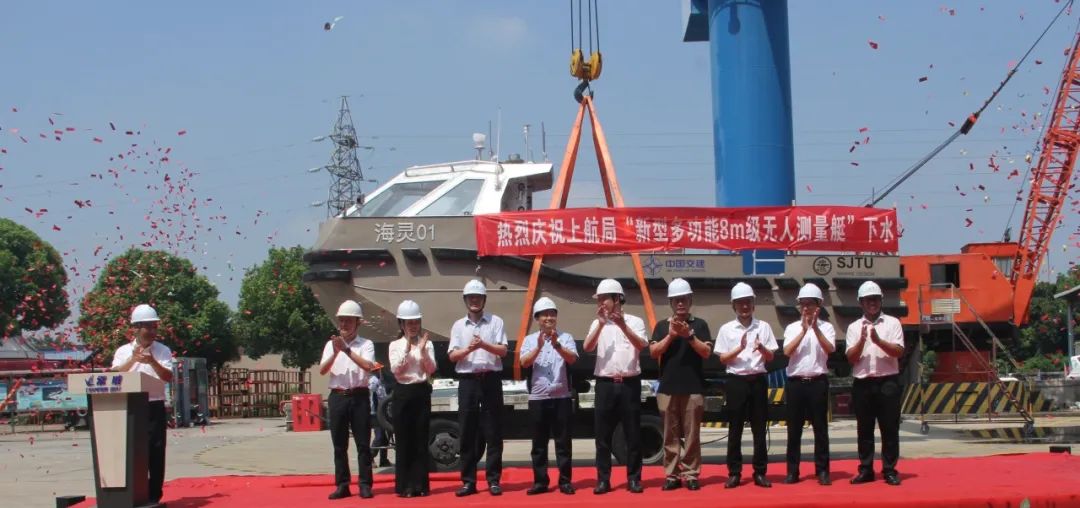 船建学院承担研制的国内首艘耙吸船载新型多功能无人测量艇“海灵01”号顺利下水