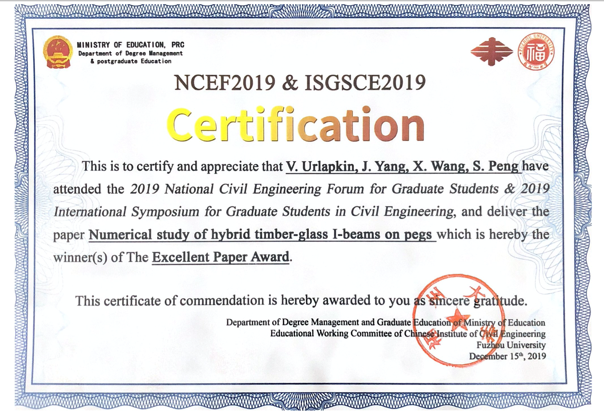 船建学子参加2019全国土木工程研究生学术论坛荣膺三项大奖